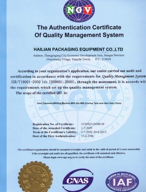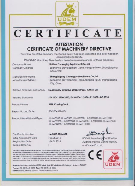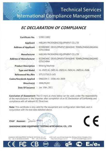 1. Notre machine à traire ont été passées à des certifictae de la CE.