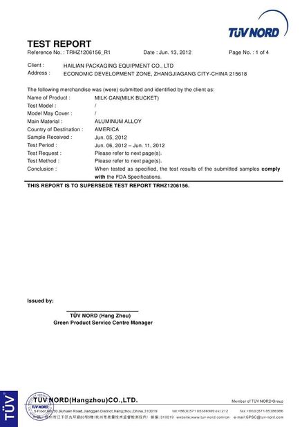 le lait en aluminium peut, revêtement de lait, tube de lait, certificat déjà passé transparent de GV FDA de seau de lait.